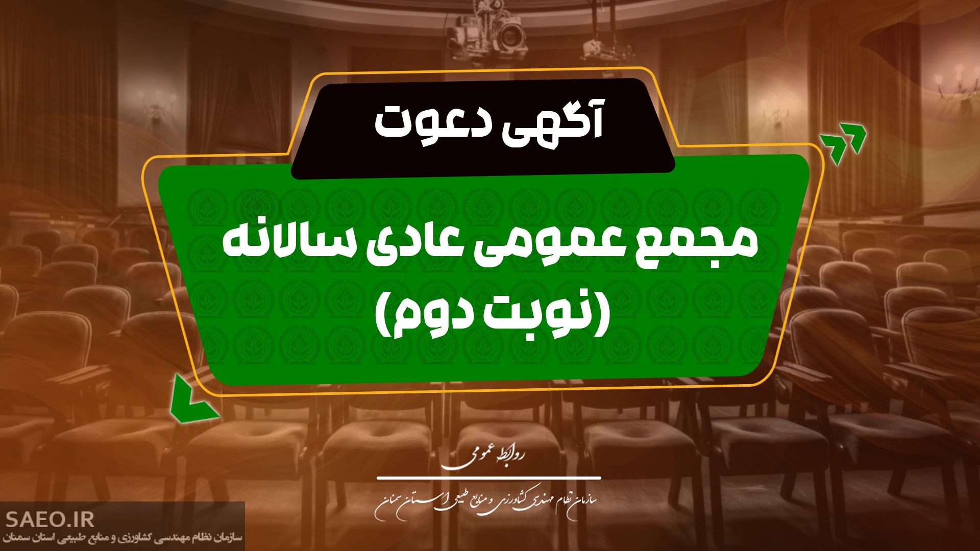 سازمان نظام مهندسی کشاورزی و منابع طبیعی استان سمنان به اطلاع کلیه اعضاء محترم سازمان نظام مهندسی کشاورزی و منابع طبیعی استان سمنان می رساند: مجمع عمومی عادی سالانه 1403 (نوبت دوم) روز پنج شنبه مورخ 1404/09/06 ساعت 9 صبح در محل سالن آمفی تئاتر ساختمان شماره 2 سازمان جهادکشاورزی استان سمنان با دستور کار ذیل برگزار می گردد. دستور کار جلسه مجمع عمومی : 1- استماع گزارش عملکرد سال 1403 شورای استان و اعلام نظر و رسیدگی نسبت به آن2- استماع گزارش مالی منتهی به سال 1403 سازمان وبررسی…